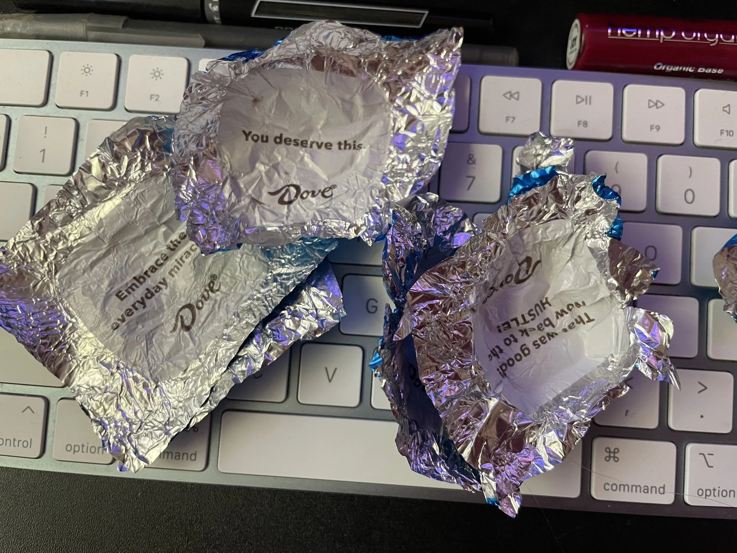 I am not someone who typically buys Dove chocolates, but now and then, I crave the element of surprise in the quote under the foil. (And of course, devouring a milk chocolate on a Tuesday afternoon has its own satisfaction).